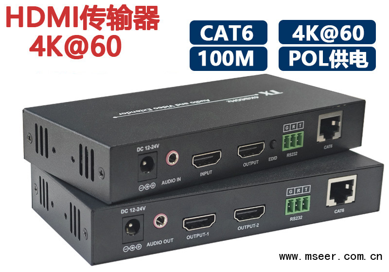 本產(chǎn)品是通過CAT6以上規(guī)格的單根網(wǎng)線將HDMI音視頻信號高清無壓縮傳輸至100米,在為用戶降低成本的同時(shí)保證信號的穩(wěn)定。本產(chǎn)品支持雙向紅外信號回傳,獨(dú)立音頻傳輸,RS232串口數(shù)據(jù)透傳和POC單邊供電,POC是指接收端RX或 發(fā)射端TX任意一端供電即可(建議電源插到接收端)使整套延長器正常工作。延長器支持HDCP功能,支持學(xué)習(xí)EDID,,極大的提升了設(shè)備的兼容性。該設(shè)備具有傳輸距離遠(yuǎn)、使用成本低、安裝方便、兼容性好、是一種穩(wěn)定高效的傳輸方式,廣泛應(yīng)用于高清會議系統(tǒng),高清影視拍攝,高清教學(xué)系統(tǒng),高清數(shù)字廣告等的音視頻傳輸。
